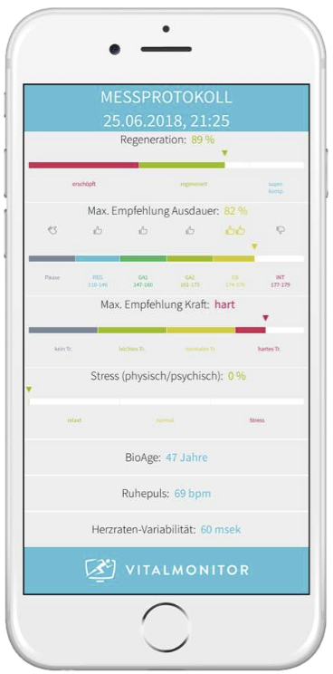 Eine genaue Vitalitäts-Testung auf Basis Deiner Herzratenvariabilität.